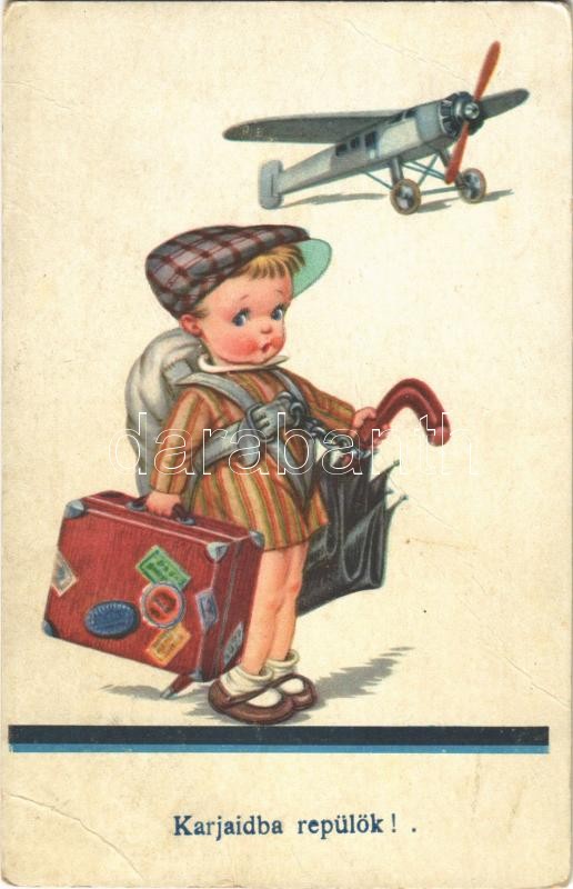 1940 Karjaidba repülök! / Children art postcard. EAS Nr. 2106. (EB)