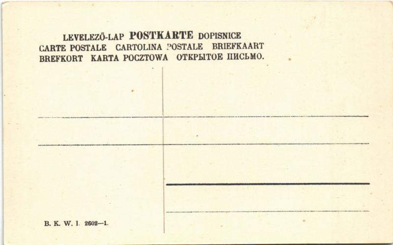 Girl with mushroom. Children art postcard. B.K.W.I. 2602-1.