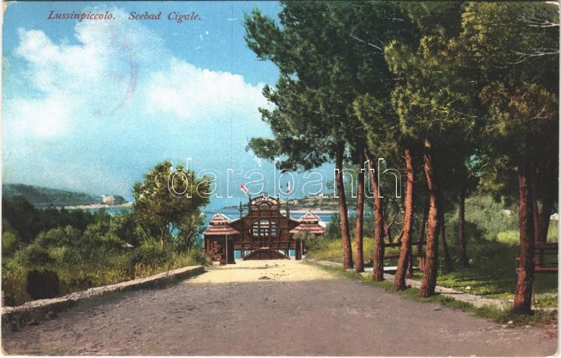 1911 Mali Losinj, Lussinpiccolo; Seebad Cigale / beach, bath, café and...