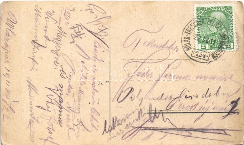 1911 Sidonie, Svatá Sidonie; forest, Villa Amalie, hotel + "HŐLAK - TRENCSÉNTEPLICZ - UNG. HRADISCH 424" vasúti mozgóposta bélyegző (fa)