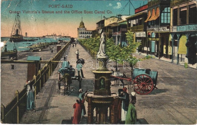 1920 Port Said, Queen Victoria's Statue and the Office Suez Canal Co., The Eastern Telegraph Co., Thos. Cook & Son (Rb)
