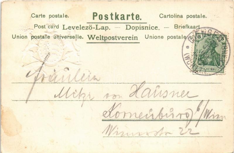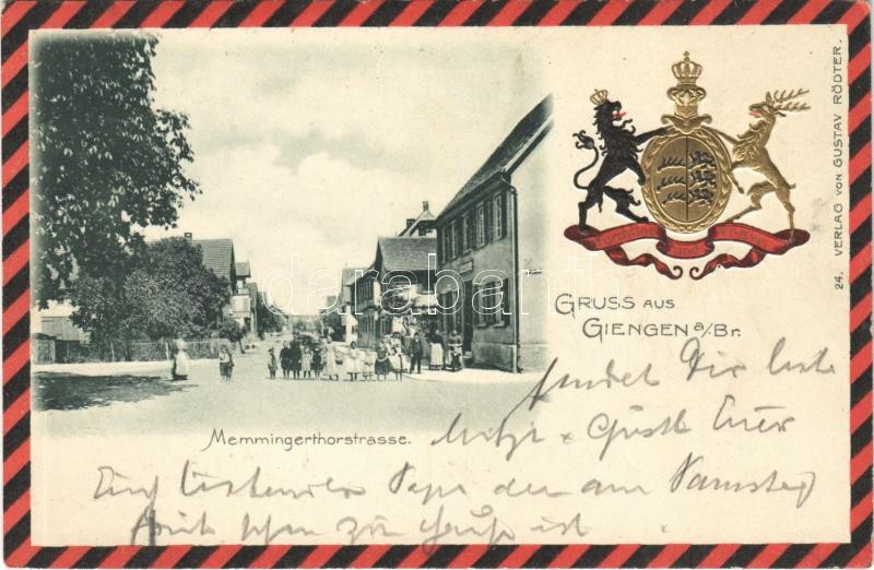 Giengen an der Brenz, Memmingerthorstrasse / street. Gustav Rödter 24. Art Nouveau, coat of arms, embossed, litho