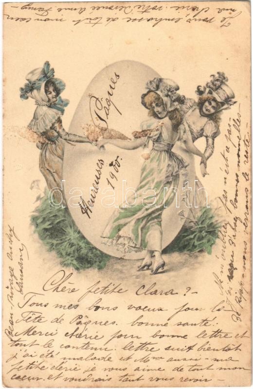 1900 Húsvét / Easter, ladies with egg. Art Nouveau, M. M. Vienne (fl)