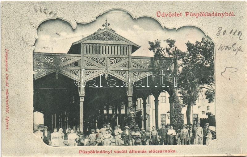 1902 Püspökladány, vasútállomás faszerkezetes előcsarnoka. Divald, Art...
