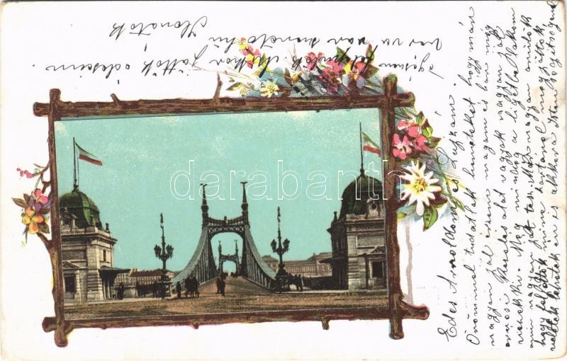 1903 Budapest, Ferenc József híd. Art Nouveau, floral, litho (EK)