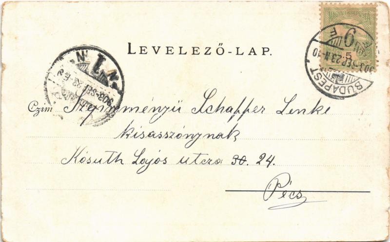 Description: 1903 Budapest V. Vigadó. Walter Haertel. C. Andelfinger & Cie. Kunstanstalt Nr. 164. Nach der Aufnahme des k.k. Hofphotographen Erdélyi (kis szakadások / small tears)