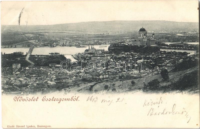 1903 Esztergom, látkép, híd, Bazilika. Stromf Ignác kiadása