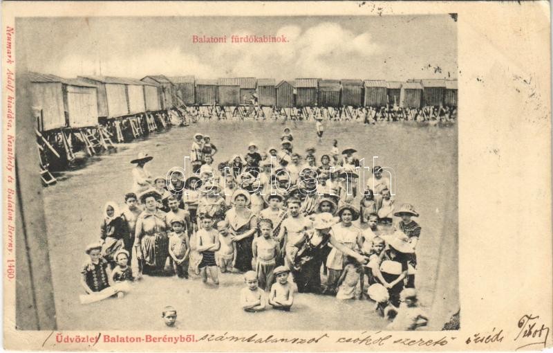 1904 Balatonberény, Berény; fürdőzők és fürdőkabinok. Neumark Adolf ki...