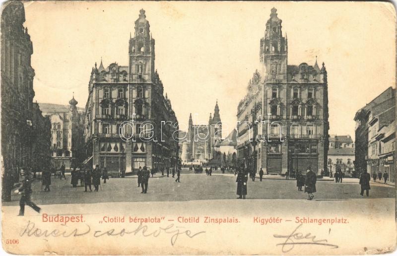 https://www.darabanth.com/en/395-Online-auction/395.0/Postcards/Hungary~1000005/1905-Budapest-V-Kigyo-ter-Klotild-berpalota-uzletek-kopott-sarkak-worn-corners~II2397848
