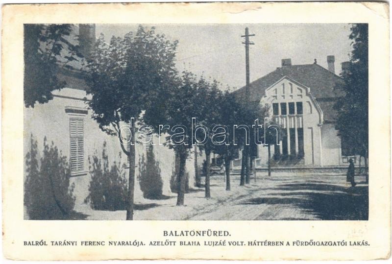 1927 Balatonfüred, balról Tarányi Ferenc nyaralója, azelőtt Blaha Lujz... https://www.darabanth.com/en/395-Online-auction/395.0/Postcards/Hungary~1000005/1927-Balatonfured-balrol-Taranyi-Ferenc-nyaraloja-azelott-Blaha-Lujzae-volt-Hatterben-a-~II2395807