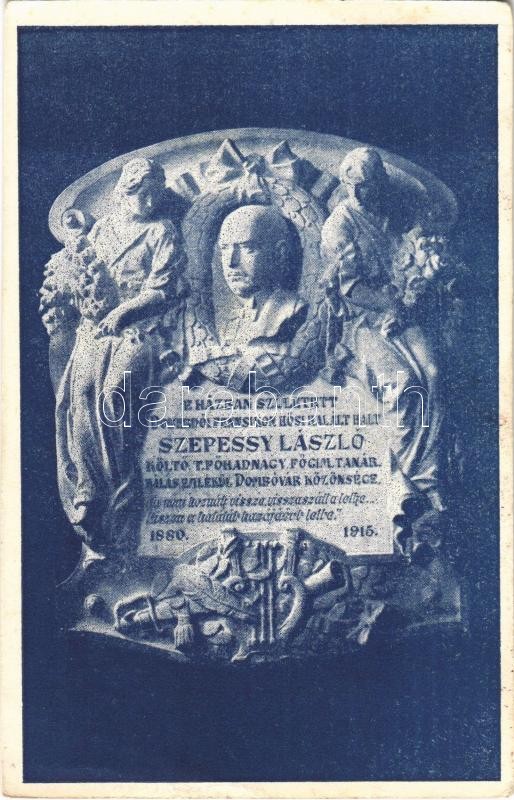 1930 Dombóvár, E házban született Doberdói fennsíkon hősi halált halt Szepessy László költő, t. főhadnagy, főgim. tanár. Moosz Alajos kiadása (Rb)
