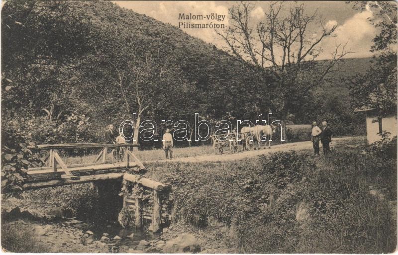 1931 Pilismarót, Malom völgy, ökörszekér, fahíd (EK)