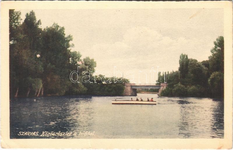 1932 Szarvas, Körös részlet, híd, csónak. Müller Károlyné kiadása (sza...
