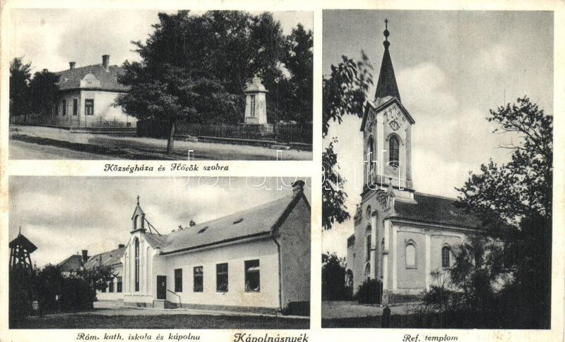 1937 Kápolnásnyék, Községháza és Hősök szobra, Református templom, Róm...