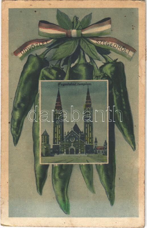1949 Szeged, Fogadalmi templom. Montázs paprikával és magyar szalaggal...