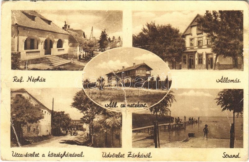 1949 Zánka, Református népház, Állami csemetekert, Vasútállomás, utca, Községháza, strand, fürdőzők (b)