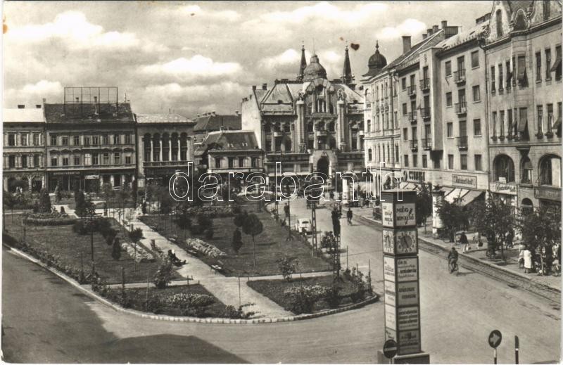 1959 Szombathely, Köztársaság tér, automobil, üzletek, gyógyszertár, k...