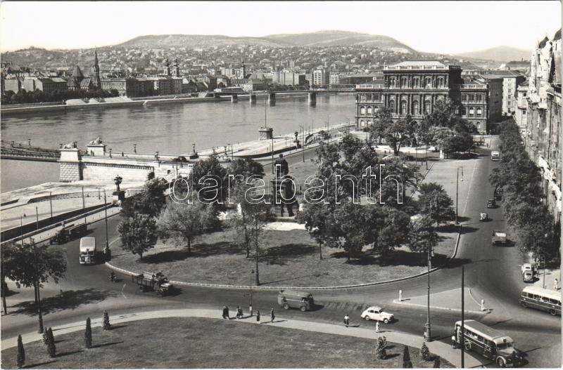 Budapest V. Dunai látkép, Lánchíd, Kossuth híd, autóbusz, automobil. K...