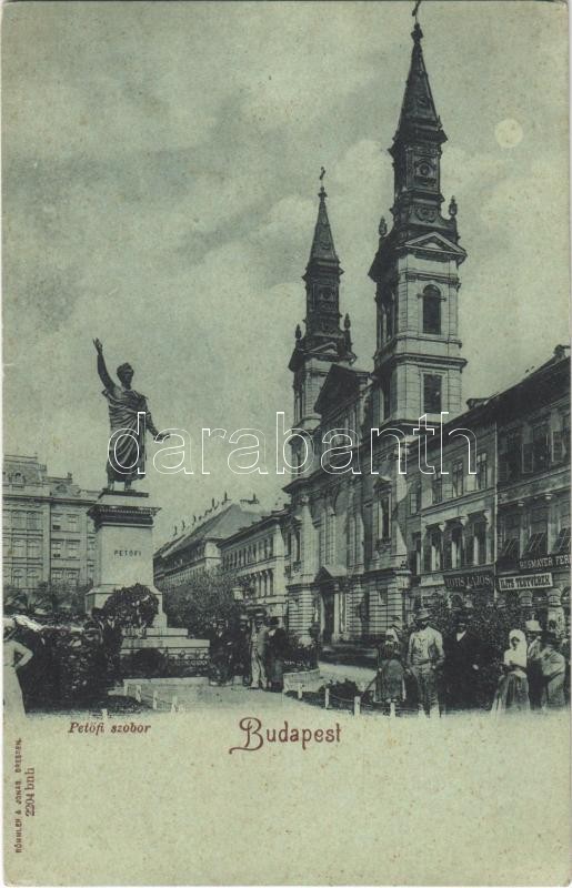 Budapest V. Petőfi szobor, Rosmayer, Ilits Tetsvérek, Totis Lajos üzle...