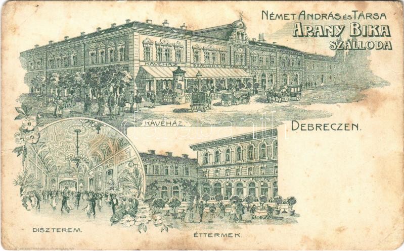Debrecen, Német András és Társa féle Arany Bika szálloda, kávéház és é...