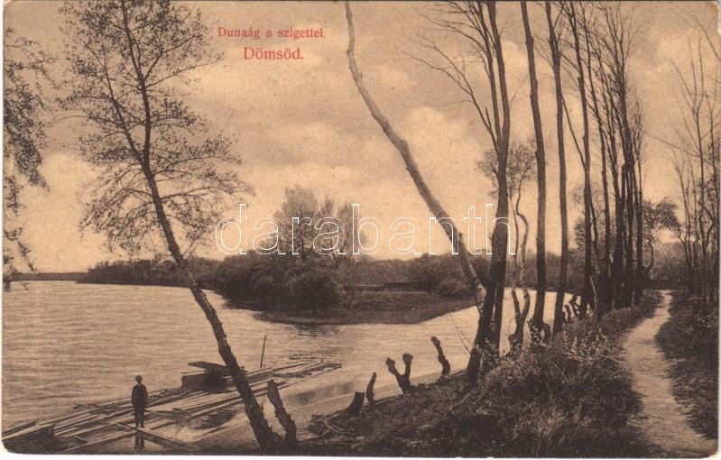 Dömsöd, Dunaág a szigettel, faúsztatás. Divald Károly