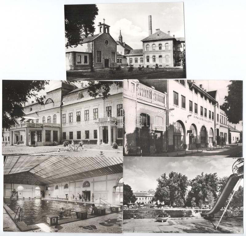 Description: Gyula, József Attila szanatórium, Várfürdő, Csecsemőotthon (kastély), Komló szálló és édességbolt. Képzőművészeti Alap Kiadóvállalat - 5 db modern képeslap