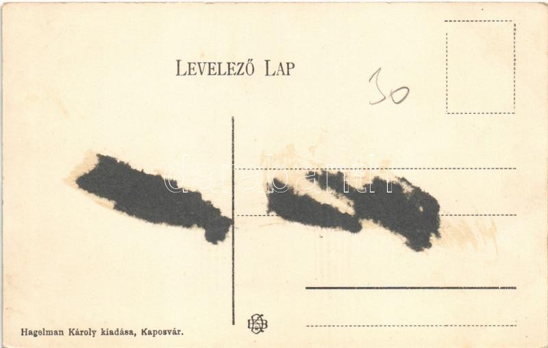 Kaposvár, pályaudvar, vasútállomás, kút. Hagelman Károly kiadása (ragasztónyom / gluemark)