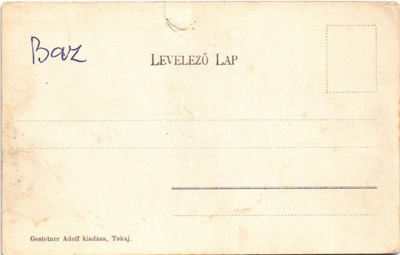 Tokaj, Erzsébet királyné emlékmű, Rákóczi vár a 17. században. Gestetner Adolf kiadása (b)