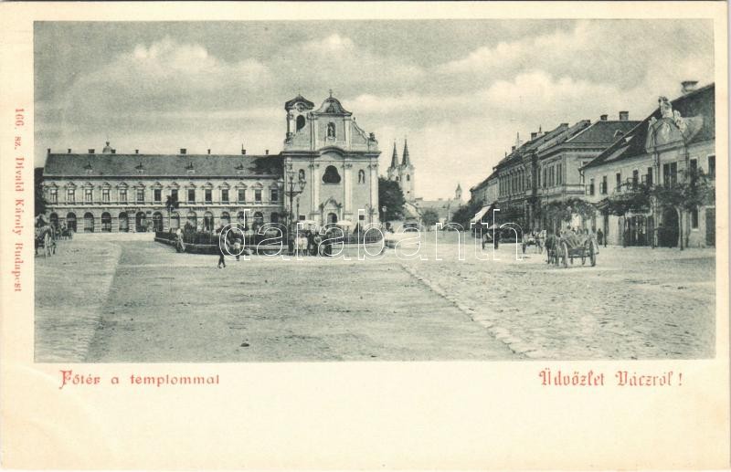 Vác, Fő tér, templom. Divald Károly 166. sz.