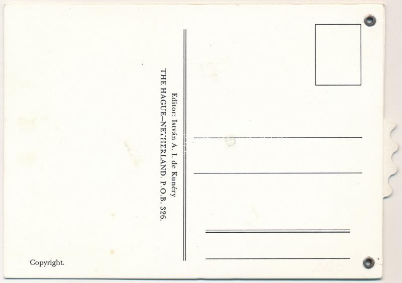 Description: Justice for Hungary - mechanikus modern térképes irredenta lap. István A.I. de Kunéry The Hague-Netherland / Map of Hungary - Irredenta mechanical modern postcard
