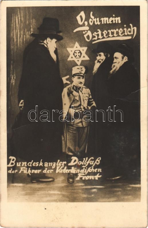 O, du mein Österreich! Bundeskanzler Dollfuss der Führer der Vaterländ... https://www.darabanth.com/en/395-Online-auction/395.0/Postcards/Judaica~1000077/O-du-mein-Osterreich-Bundeskanzler-Dollfuss-der-Fuhrer-der-Vaterlandischen-Front-Engelbert-Do~II2402877