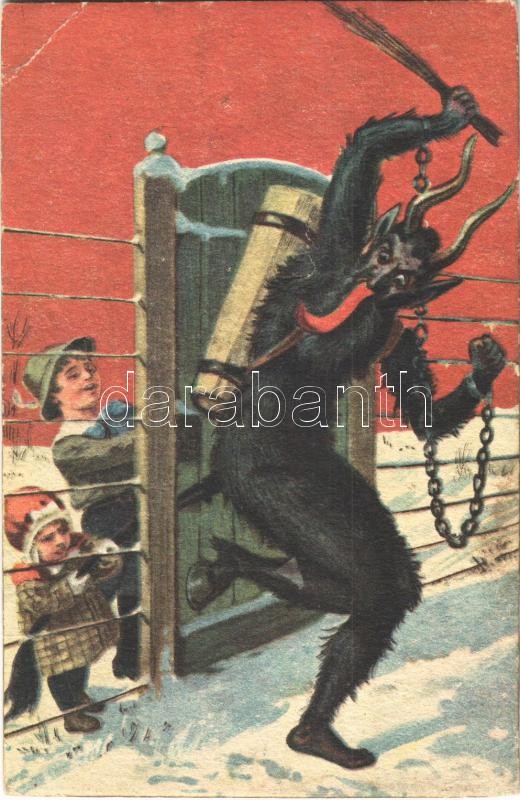 Krampus with children. S.B. Excelsior 6145. (vágott / cut)