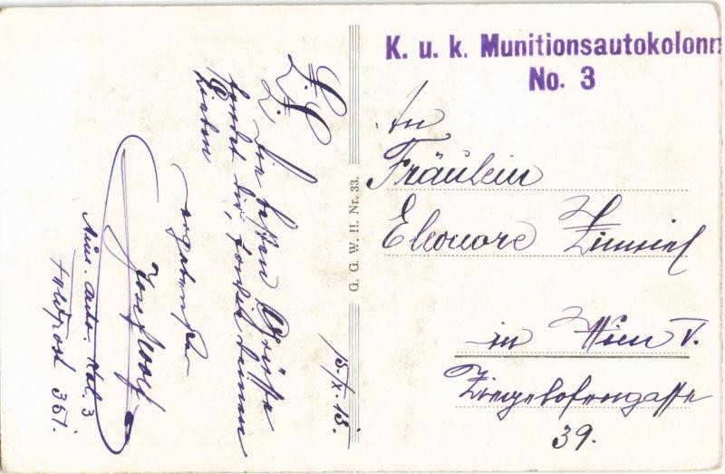 1915 Ihr Bild / WWI Austro-Hungarian K.u.K. military art postcard. G.G.W.II. Nr. 33. + "K.u.K. Munitionsautokolonne No. 3." (EB)