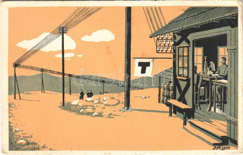 Description: 1917 Das Reinerträgnis fließt dem Witwen- und Waisenfond des Tel. Regts. zu / WWI Austro-Hungarian K.u.K. military art postcard, field telegraph station s: Fliegel + "K.u.K. Reserve-Telegraphen-Betriebs-Abteilung No. 20." (EB)