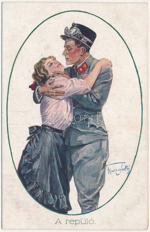 A repülő / WWI Austro-Hungarian K.u.K. military art postcard, pilot with lady. P.G.W.I. 130. (r)