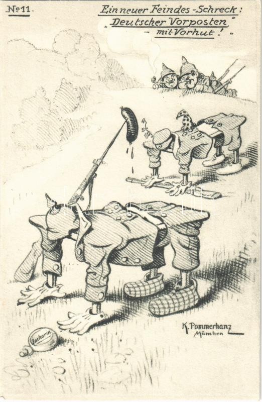 Ein neuer Feindes-Schreck: Deutscher Vorposten mit Vorhut! / WWI German military art postcard, humour. Nr. 1011. s: K. Pommerhanz (Rb)