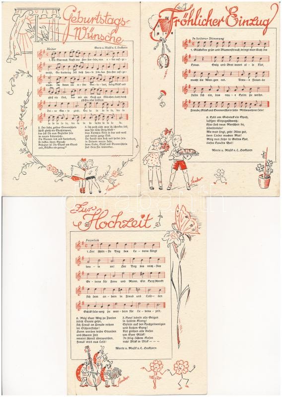 5 db MODERN motívum képeslap: német zene kottával / 5 modern motive po...