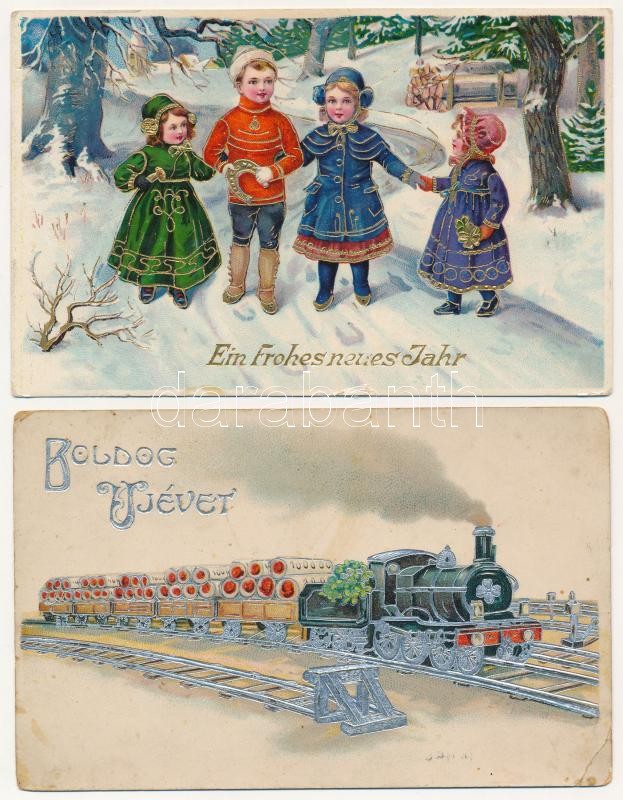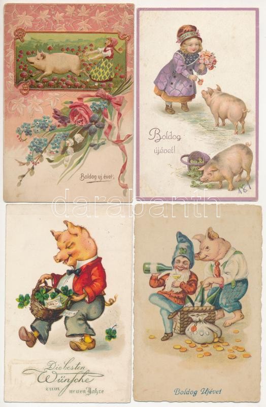 19 db RÉGI motívum képeslap: újévi üdvözlő (4 malacossal) / 19 pre-1945 motive postcards: New Year greeting (4 pigs)