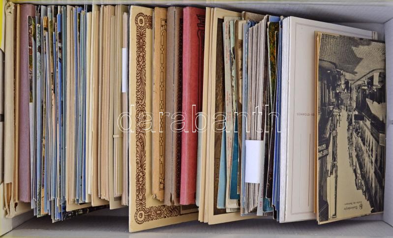 Régi európai városképes lapok, főleg Németország, kevés Svájc, még kevesebb Belgium, jó minőségű anyag, kb 550 db közte néhány füzet, dobozban.