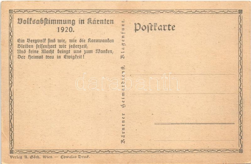 1920 Volksabstimmung in Kärnten / Carinthian plebiscite propaganda, referendum, coat of arms, border poll. Verlag Göth s: Kutzer (EB)