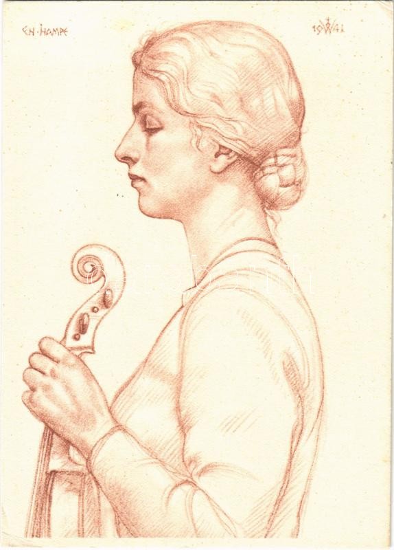 Description: Eine Geigerin aus Baden. Deutscher Blutadel in aller Welt. Verlag A. Daehler Nr. 49. / WWII NSDAP German Nazi Party propaganda art postcard s: W. Willrich (EK)