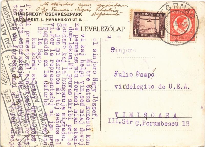 1931 Hárshegyi Cserkészpark. Budapest II. Hárshegyi út 5. / Hungarian ...