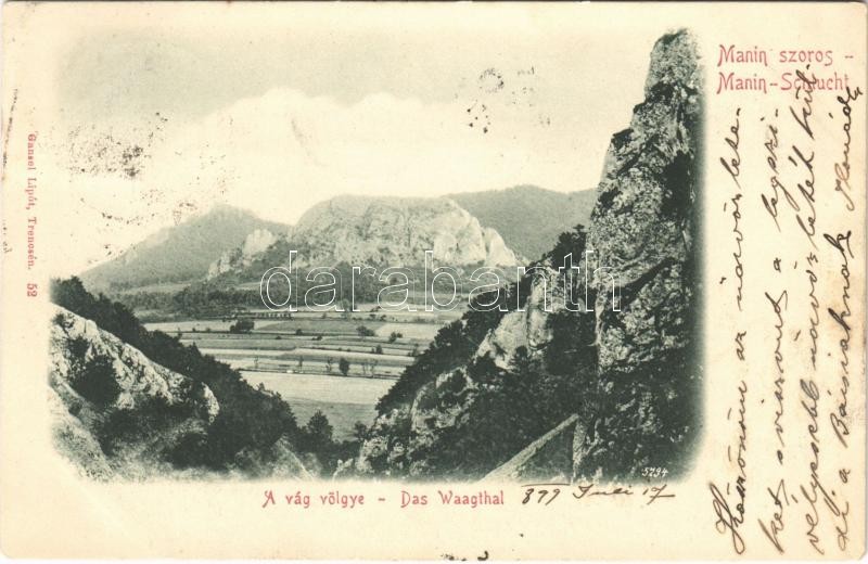 1899 (Vorläufer) Manin-szoros, Maninschlucht, Manínska tiesnava; Vágvölgy. Gansel Lipót 52. / Das Waagtal / Povazie / Váh Valley (EK)