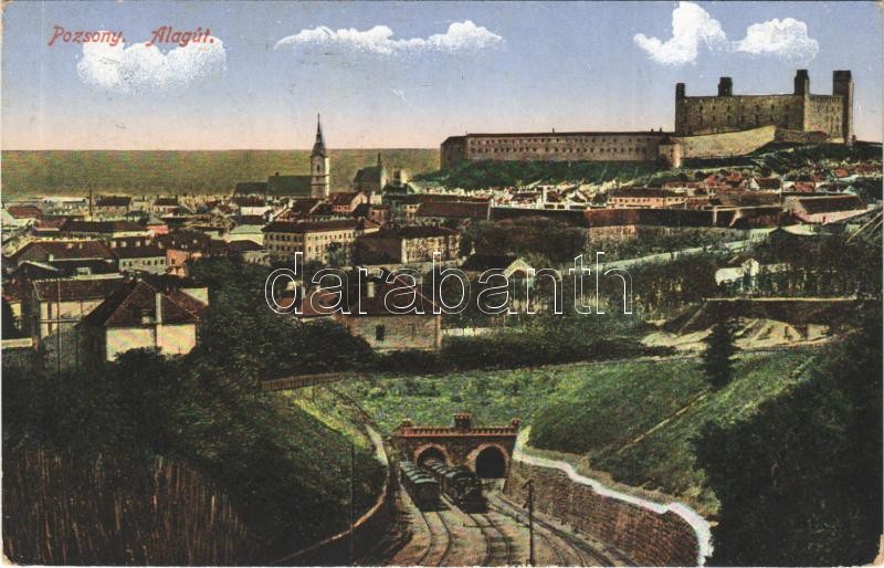 1915 Pozsony, Pressburg, Bratislava; Vasúti alagút, vonatok, vár / rai...