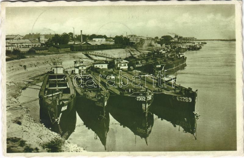 1938 Komárom, Komárnó; Pristav / teherkikötő, iparvasút, vonat, vagono...