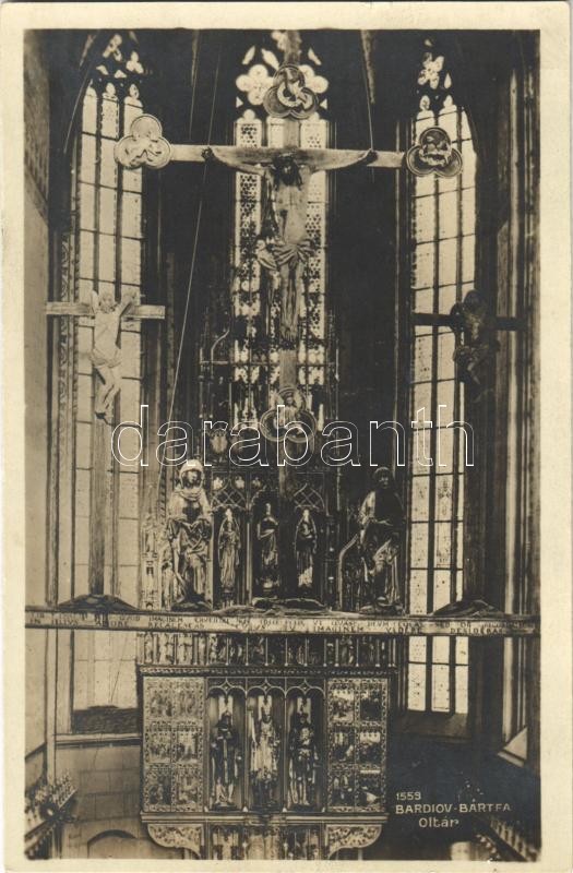 Bártfa, Bardiov, Bardejov; templom belső, oltár / church interior, altar. photo