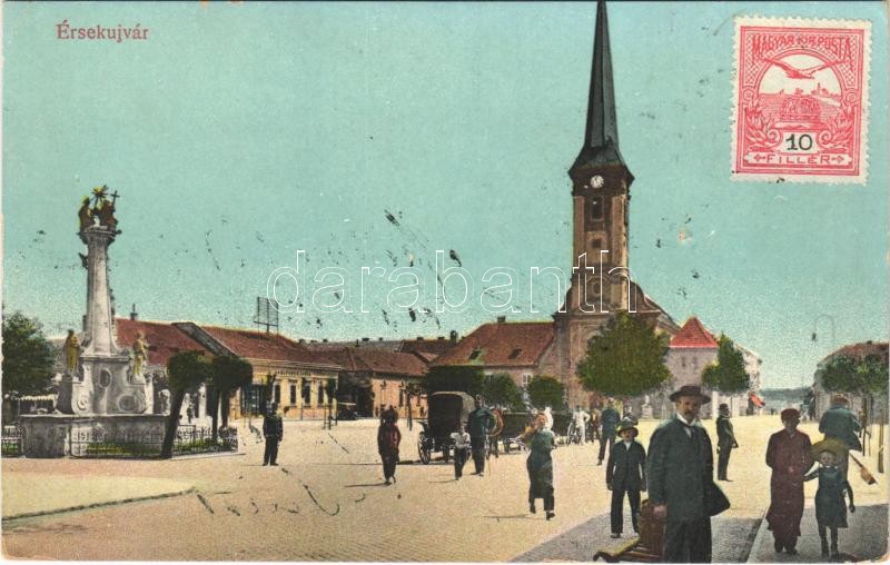 Érsekújvár, Nové Zámky; Kossuth Lajos tér, templom, Conlegner és Fia ü...