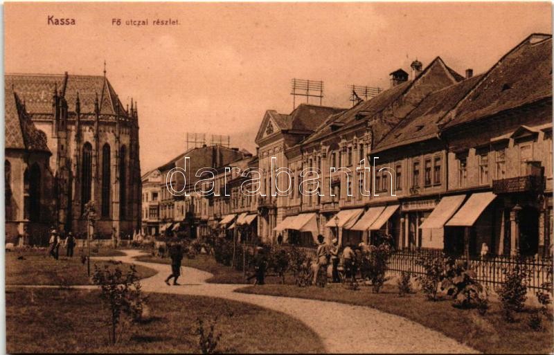 Kassa, Kosice; Fő utca, Neumann M. üzlete, László Béla kiadása / main street, shops