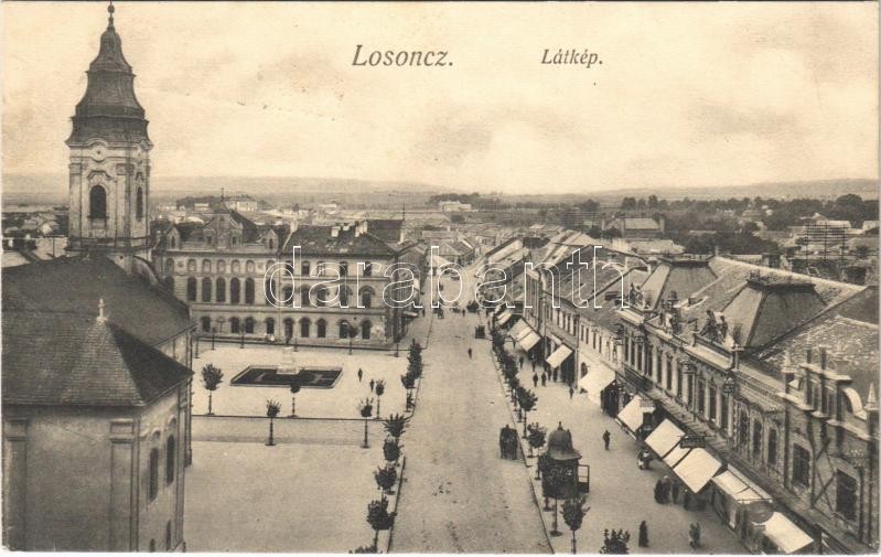 Losonc, Lucenec; látkép, tér, templom / square, church + "ÚJBÁNY...