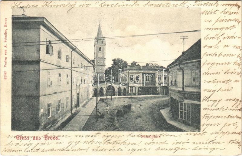 1902 Szászváros, Broos, Orastie; Schulplatz / Iskola tér, gyógyszertár...